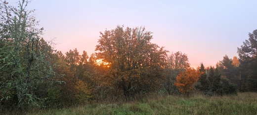 Jag och U åkte ner till Gunnarsbo i förra veckan. Jag har alltid tyckt att det är så stilla och lugnt på min gård där jag bor, men det går inte att jämföra med tystnaden här nere och avskildheten och närheten till en natur som tillhör djuren i högre grad än människorna. På morgonen när U gick ut stod där en älgko vid rosenbusken fem meter bort. Jag hoppas att ugglan, som flög över oss när vi var här de två första gångerna förra året, ska komma tillbaka nu när inte ljuset står på och lyser hela nätterna.